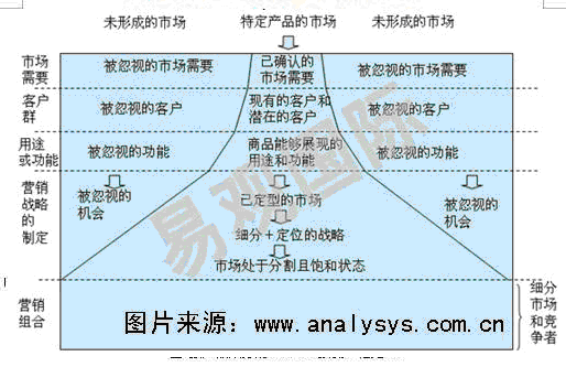 易观国际的《NGN新业务营销研究》中指出,面对同质化竞争严重的局面,传统的垂直营销理论已经成为行业发展的瓶颈。如下图所示,其将市场锁定为一个固定的模型,从而因看不到其他创新的可能而失去了良机。
