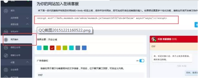 网页插件集成移动客服是比较简单,原理是在自己网站的</body>标签之前加入一段由环信提供的js,即可完成环信在线客服的植入,实现访客在网页端与在线客服的沟通。