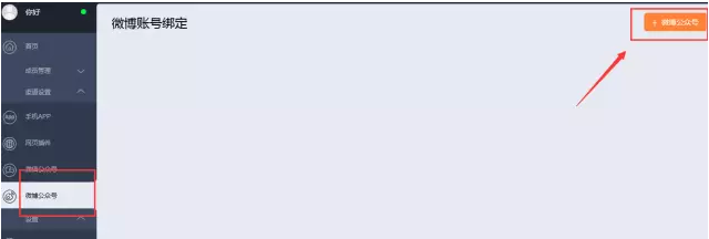 集成方式:管理员模式下==》渠道设置==》微博公众号。
