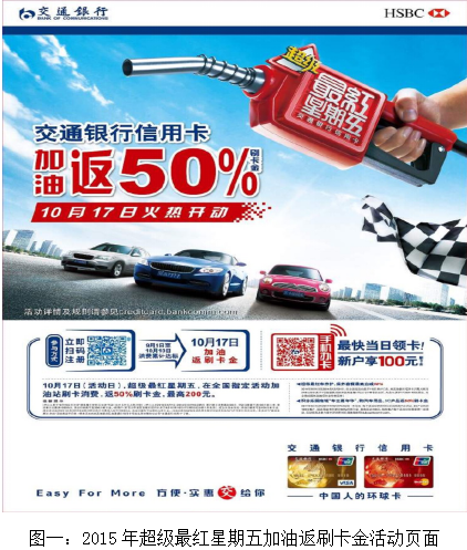交通银行最红星期五活动已覆盖借记卡及信用卡,逢周五都可享受5%、10%返超市及加油刷卡金,更有每年两次的超红返50%刷卡金优惠。借记卡方面,也形成了最红手机充值、最红Q币充值、最红交博汇团购等一系列特惠活动。