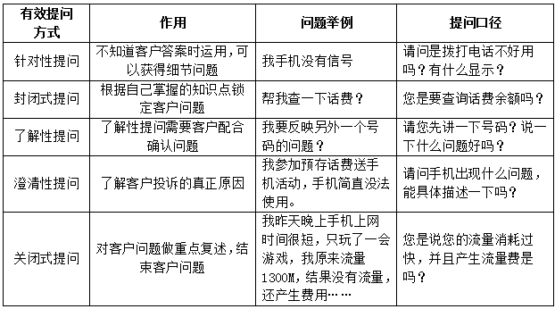 有效提问:依据客户诉求通过提问的方式引导客户提出诉求。
