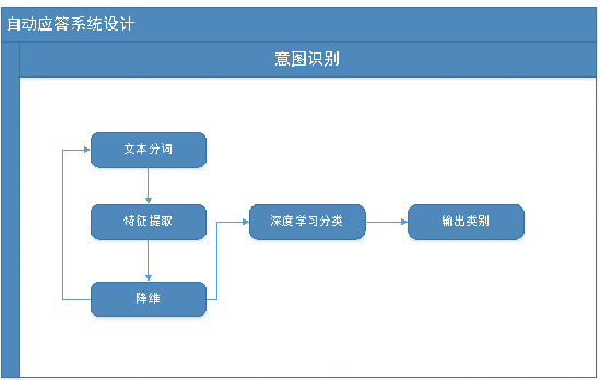 意图识别是自动应答系统里面非常重要的一部分,首先要通过用户的提问,进行文本分词,以判断用户的意图。只有意图识别对了,才能在相应的类别里面反馈用户的答案。通常将用户的意图分为:产品推荐:如理财产品的咨询;信息查询,如网点营业时间,当前汇率利率等;投诉反馈,如遭遇不公正待遇;问题咨询,如K宝不能使用等问题要求解决;闲聊,诸如今天天气如何之类的聊天内容。在这一步,需要通过深度学习对用户的输入文本进行意图分类,以决定下一步问答匹配的分类(如图8)。