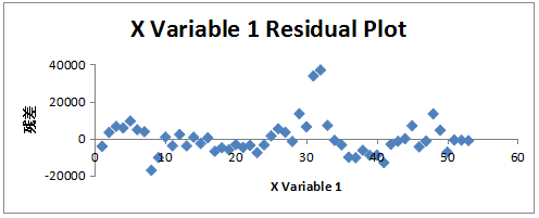 从图三中可以看出这些点大致散落在某直线近旁,可以认为变量之间的关系为线性一元函数。但话务量月度变化趋势较明显,比如第31至33周即7月27日至8月10日之间,迎峰度夏的高峰期,残差较大,如图四。经计算得预测准确率在±15%范围的数值占比为69.23%。