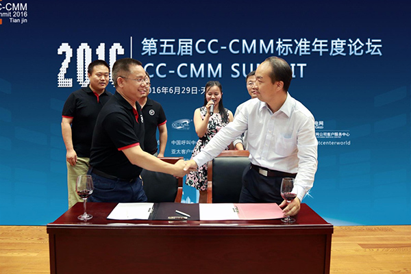 2016年6月29日,天津。今天,CC-CMM国际标准组织与顺丰速运有限公司在2016第五届CC-CMM国际标准年度论坛上举行新闻发布会,宣布共同发起并启动开发多媒体客户中心服务标准。CC-CMM国际标准组织主席赵溪和顺丰速运呼叫中心管理部负责人肖冬军代表双方签署合作备忘录。顺丰速运呼叫中心管理部电子服务营销处负责人孟昭文、在线服务中心负责人强振华和中国呼叫中心与电子商务发展研究院常务副院长倪春洋、南京航空航天大学经济与管理学院教授王鲁捷、中科院软件所兼职研究员,博士生导师居德华、CC-CMM国际标准组织执行理事葛舜卿、CC-CMM国际标准组织资深顾问周桂梅出席了当天的发布活动。