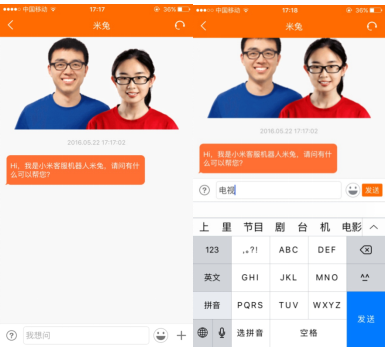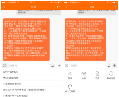 图7:小米手机客服机器人交互界面 图8:小米手机客服“+”功能键