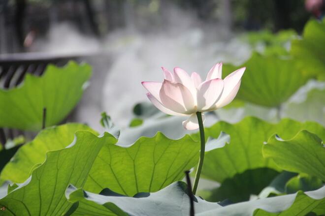 7月中旬,正值盛夏,亚洲艺术公园的荷花开得正艳,水雾中的荷塘宛如仙境。
