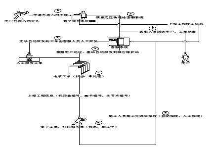 -客服中心接收到CM系统的开户请求,将信息纳入到工作流中,自动将该工作任务派发到约定的维护站。