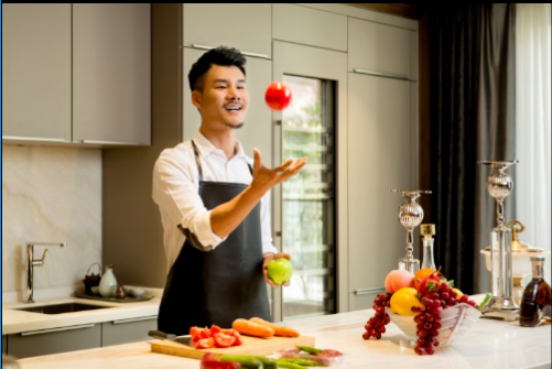 不过,摘下围裙,这位暖男大厨居然能立马换一个完全不同的形象。
