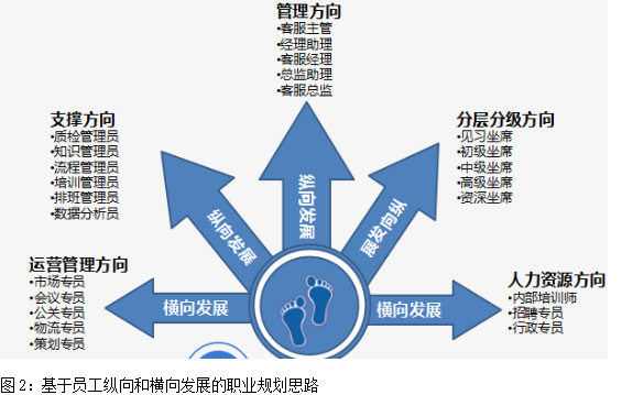 (2)客户联络中心内部管理序列(针对有良好教育背景,学习能力和综合技能提升快速,并且有强烈企图心的员工):员工、主管、经理助理、副经理、经理;
