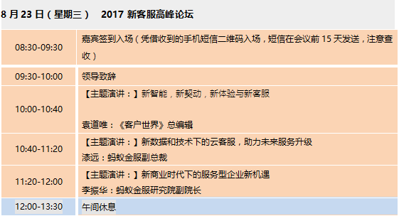 2017新客服高峰论坛日程(8月23日,杭州)