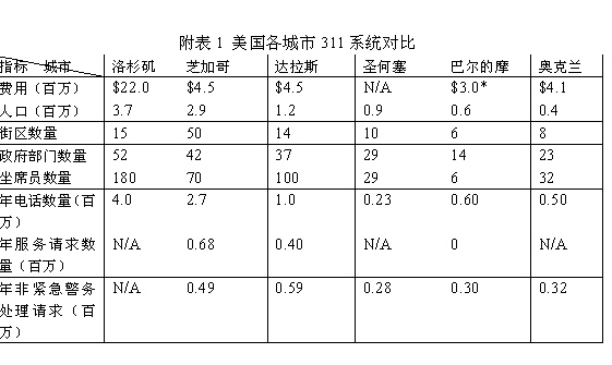 附表1 美国各城市311系统对比