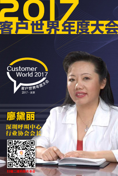 廖黛丽女士应邀担任第十三届“金耳唛”中国最佳客户中心评选评委;在2017客户世界年度大会上的分享主题是:把握转型脉搏、凝聚平台资源、助力会员发展,推动行业再创新辉煌。