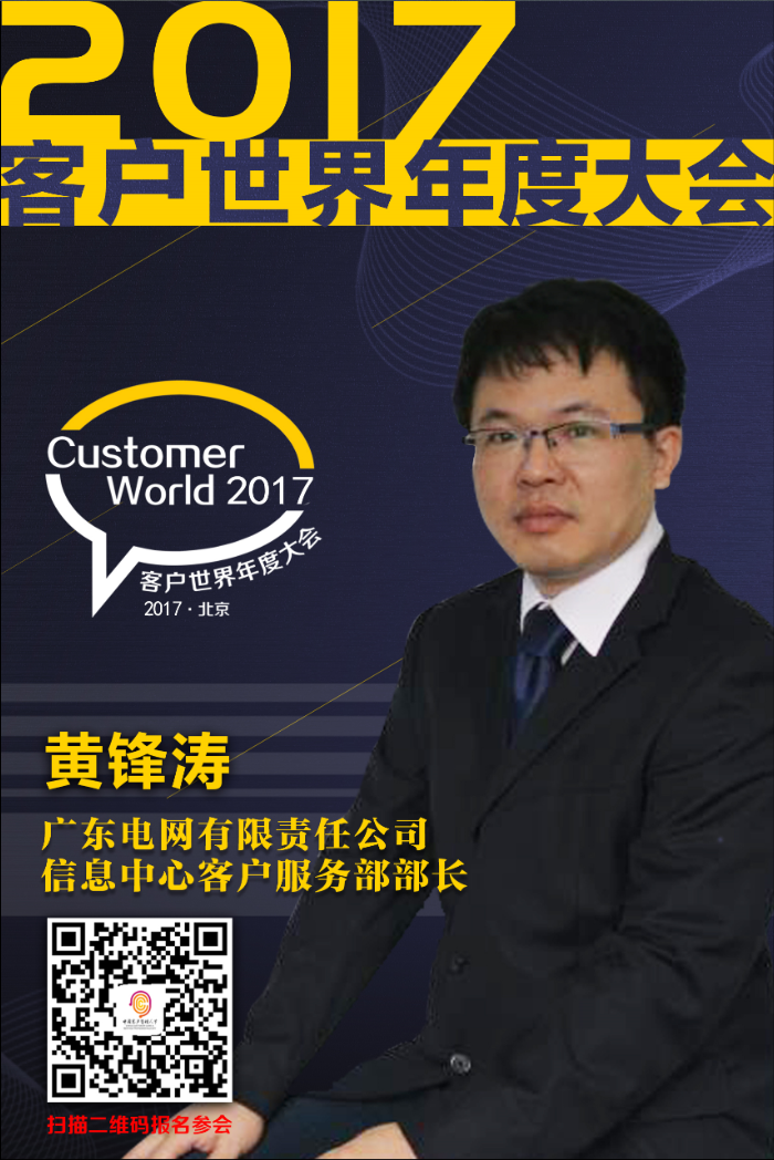 黄锋涛先生将出席2017客户世界年度大会,在“金耳唛杯”年度总决选的现场代表广东电网信息中心参加客户中心创新管理案例分享。