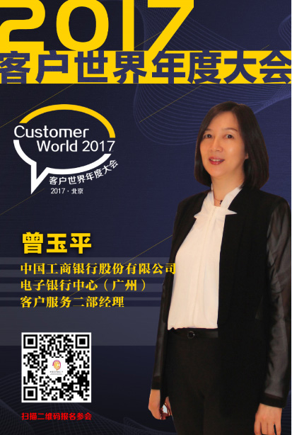 曾玉平女士将出席2017客户世界年度大会,在“金耳唛杯”年度总决选的现场代表中国工商银行电子银行中心参与客户中心创新管理案例分享。