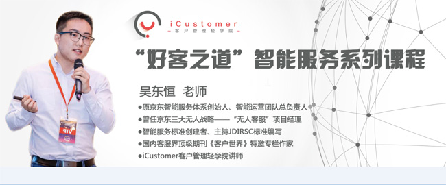 《智能服务》在线系列课程由客户世界机构旗下流媒体平台“iCustomer 客户管理轻学院”推出,我们特别邀请了业界知名的智能服务专家、原京东智能服务体系创始人、智能运营团队总负责人吴东恒老师进行本系列课程的讲授及课后答疑。