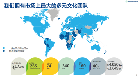 其他领先的欧美国家分公司,我就不多提了,一圈算下来,Teleperformance互联企信在全球74个国家提供服务,真是太大啦,连小编也觉得兴奋起来!