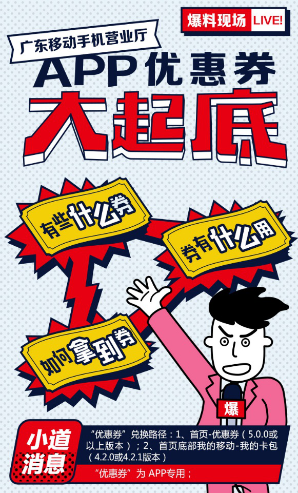 优惠券的形式:包括话费券及流量券两类,券面标明具体的话费额/流量M数、优惠券有效期及相关使用条件。