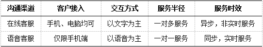 表1 在线客服和语音客服差异对比