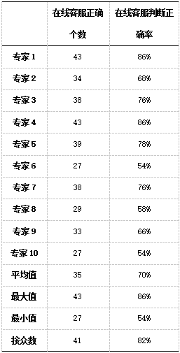 2、通过专家评分法对在线客服适宜承载服务内容的判断正确率为82%
