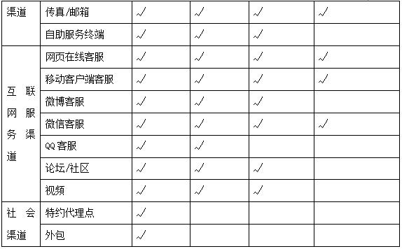 表1 标杆客户服务渠道对比表