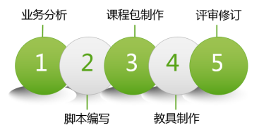 每一门课程的开发周期为15个工作日,第1-5个工作日为业务分析,6-10个工作日为课程设计与开发,11-15个工作日为课程的评审与修订。