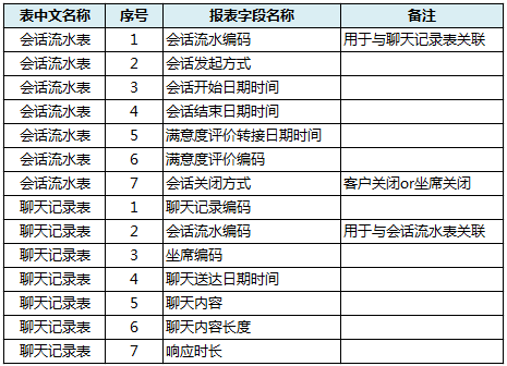 在介绍指标计算方法之前首先要了解在线服务系统的后台数据基础。几乎所有在线业务系统都有会话流水表、聊天记录表两张数据表,其中会话流水表记录了座席与客户发生会话的开始时间、结束时间等会话层有关信息;聊天记录表则记录了每一次座席或者客户输入的聊天内容、聊天发生时间等。