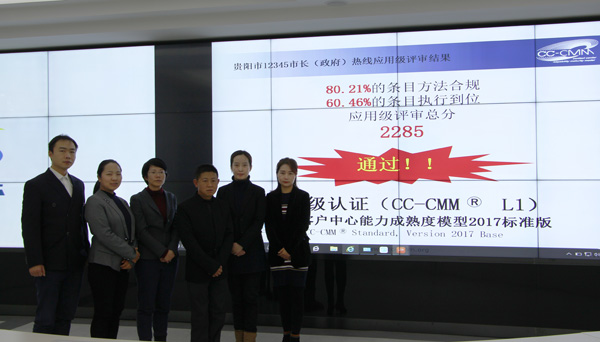 2018年2月9日,贵阳市12345市长(政府)热线顺利通过CC-CMM 国际标准应用级(L1)认证,是继上海 、广州、深圳、杭州市长(政府)热线之后,全国第五家通过CC-CMM国际标准应用级认证的市长热线,标志着贵阳市12345市长(政府)热线正式迈向国际化,打造符合国际标准的服务体系,更好地为广大市民服务。
