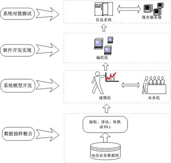 客户风险预警系统需要遵循分步骤、多阶段的原则进行总体设计和部署,其系统结构及实施过程如下图所示: