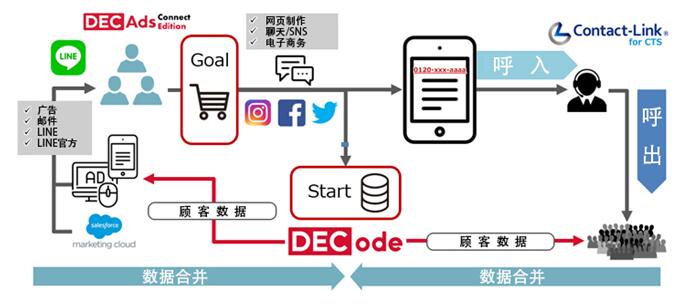 transcosmos集团(中文名:大宇宙集团;以下简称:transcosmos;总部:日本东京;总裁兼COO:奥田昌孝;东证代码:9715)通过云联络中心平台“Contact-Link”和DMP服务“DECode”的无缝衔接,实现顾客会话日志和营销数据的统一管理,并利用包括积累的会话日志在内的营销数据实施广告投放,同时经由DECode在各类广告平台进行投放广告。