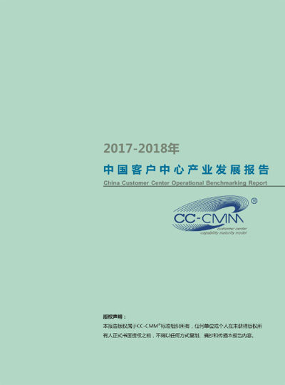 2018年4月,CC-CMM标准组织正式发布《2017-2018年中国客户中心产业发展报告》,报告共包括九章33节内容,报告对中国地区的客户中心产业进行深入的分析与探讨,包括其宏观产业环境、市场特点、影响因素、技术及功能应用发展等;同时报告也对今后几年客户中心的发展进行了大胆的预测。