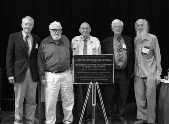 图2:2006年,会议五十年后,当事人重聚达特茅斯。左起:摩尔,麦卡锡,明斯基,赛弗里奇,所罗门诺夫