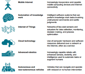 麦肯锡认为,12项颠覆技术将改变行业与生活,并带来广泛经济影响力,其中,移动互联网、知识工作自动化、万物互联、云技术、先进机器人、自动驾驶汽车这六项技术对经济的影响力最大,到2025年产生的经济影响力达到15.2-36.3万亿美元(如图4)