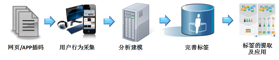 电商中心利用既有的行为数据插码整合技术优势进行客户行为轨迹数据的深度挖掘,即围绕用户在网站、APP等互联网渠道访问过程中的业务转化、流程断点、流失场景等关键要素建立“潜在客户挖掘”、“沉默流失预警”等多类行为模型,进而形成可直接应用于生产运营的客户渠道行为标签,实现目标客群的精准定位,为互联网化的精准营销提供了有力支撑(如图1)。
