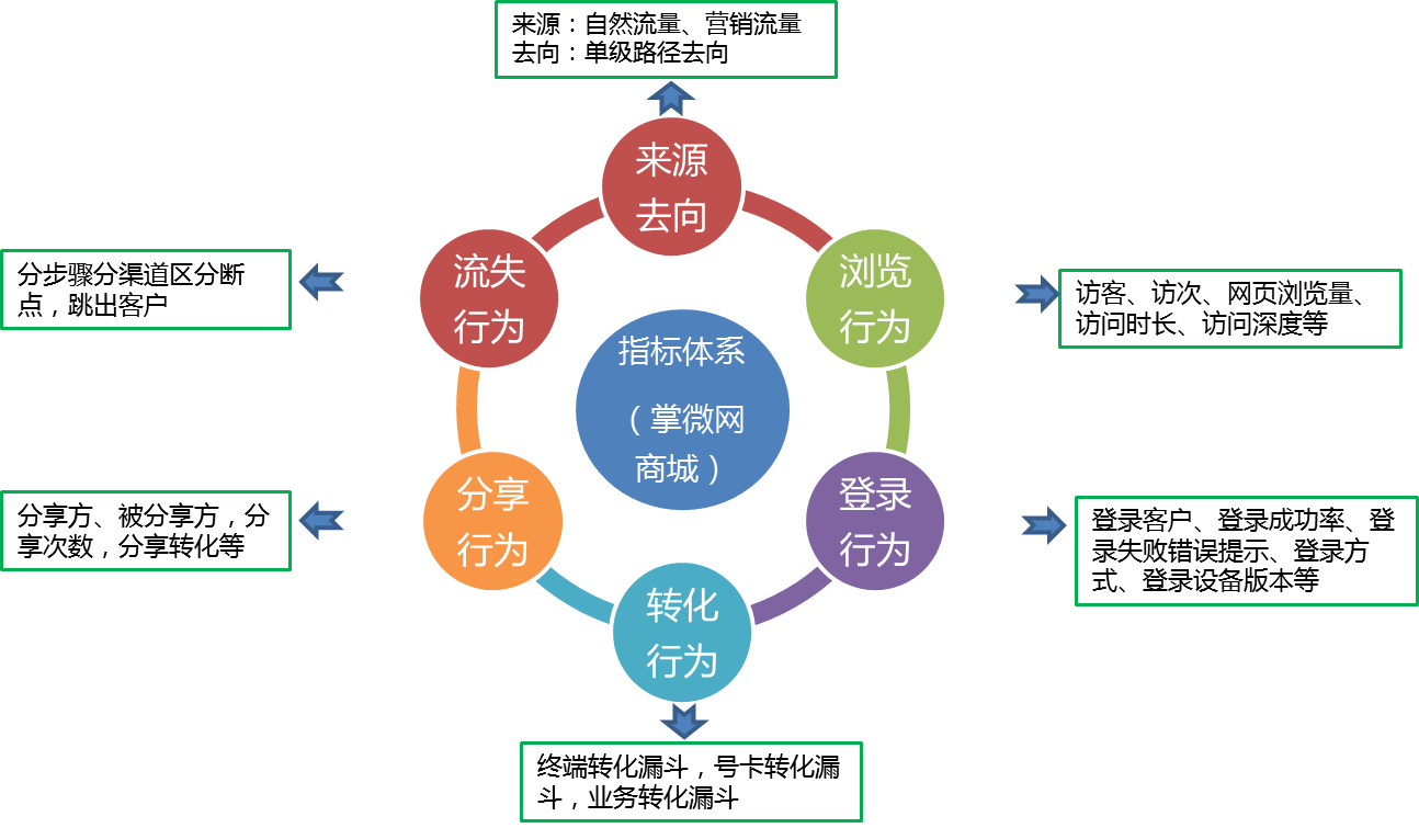 电商中心基于电子渠道现状对标互联网先进企业,梳理构建了一整套适用于移动电渠的客户行为指标体系,共计覆盖157个行为指标(如图5)。