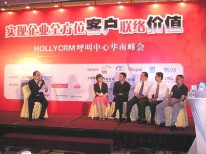 2006年7月27日,广州。在呼叫中心领域内享有盛誉的HOLLYCRM(合力金桥软件)于广州中国大酒店举行规模盛大的以“实现客户全方位联络价值”为主题的呼叫中心华南峰会。HOLLYCRM(合力金桥软件)公司作为呼叫中心领域内卓越的整体解决方案提供商,其推出的专门针对政府和企业的呼叫中心解决方案 – HollyC6呼叫中心解决方案已经得到了广泛应用, 并已成为业内的首选产品。此次在华南地区召开的呼叫中心峰会, 得到了HOLLYCRM(合力金桥软件)广大的合作伙伴的大力支持,其中包括: AVAYA、华胜天成、HP、 华普、Oracle、中软、宇高、缤特力、友邻、融天等知名厂商大力支持; 同时, 中国C&C呼叫中心研究院、迪铭营销的专家也作为嘉宾出席了此次大会;并且, 超过三十家知名媒体也对会议进行了全程关注报道。这充分说明了HOLLYCRM(合力金桥软件)公司作为呼叫中心产业链的整合者强大的号召力。前来共襄盛举并做主题发言的公司包括业界著名的平台提供商、 呼叫中心领域内的咨询专家,呼叫中心优秀的运营管理专家等。 广东省信息协会客户服务专业委员会常务副主任苏军也专程出席峰会并致辞。