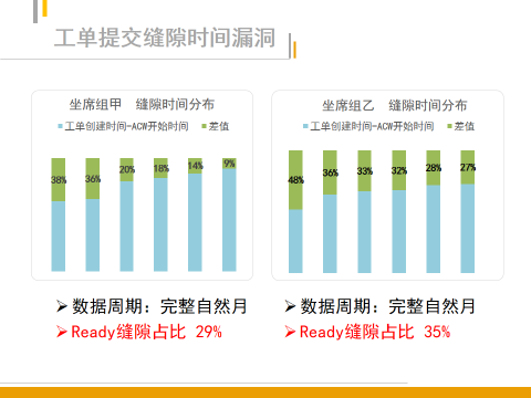在ACW时间基数较大、员工小休管控严格的客服中心,工单提交缝隙时间漏洞会比较严重。因为员工在繁忙的客户服务过程中总是需要一定的小休时间,若不能通过正常的小休渠道纾解,就会存在挤出效应,员工会利用各种可能的时间碎片隐藏自己的休息时间。