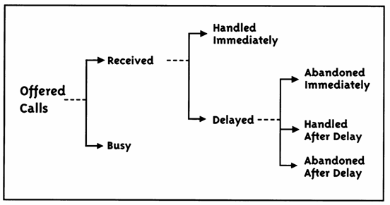 业务量预测所使用的数据必须能够准确反应出试图联络你的呼叫者的数量(见图1)。如果这些数据忽略了那些遇到忙音没有打进或者放弃呼叫的呼叫者,你将会低估未来的呼叫量需求。但是,如果这些数据包括了每一次忙音呼叫和放弃的呼叫,你将很可能高估了未来的业务量需求。预测业务量所使用的历史数据应该准确反应“所有的联络请求”再减去呼叫者的重复尝试。