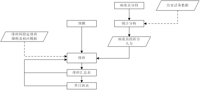 根据前期统计分析结果,基于相应的预测算法,计算得到待排班日期所需要的座席员数量,为排班师排班时提供相应的参考。