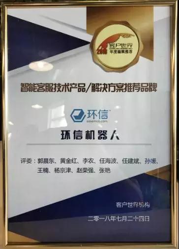 从AI1.0—4.0,环信机器人荣获2018年度智能客服推荐品牌