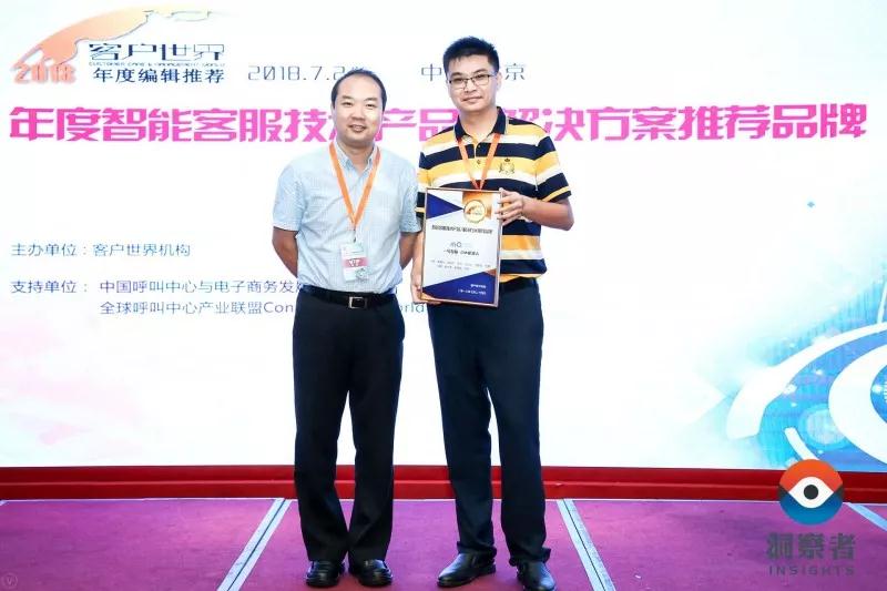 2018年7月24日,客户世界 • 洞察者2018北京论坛在丽景湾国际酒店如期举办,大会正式发布了“2018年度编辑推荐——智能客服技术产品/解决方案”评选活动的获奖名单。小A机器人被授予“2018年度智能客服推荐品牌”荣誉证书。