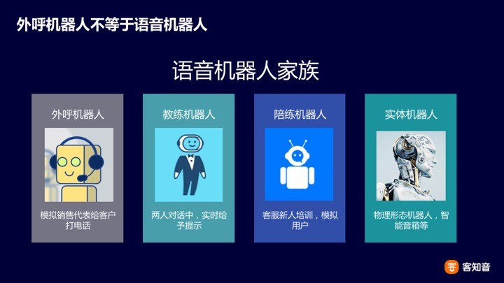 说到这里,我们谈的都是外呼机器人的问题,而外呼机器人不等于语音机器人,语音机器人的应用更加广泛。我们一起来看一下语音机器人家族的其它成员。