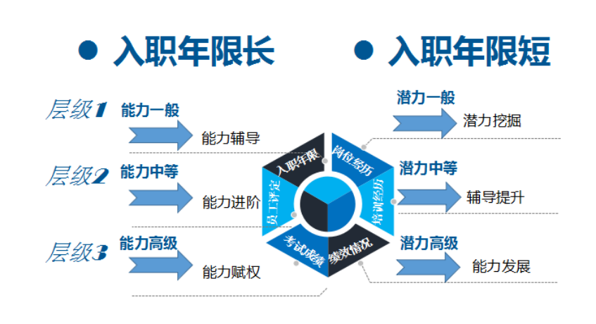 第一步,多维普查员工情况,包括入职年限、岗位经历、参加过的培训、绩效情况、参与的考试及成绩、员工自我评估及所在单位评定情况等,从而清晰定位员工能力的长处和短板。