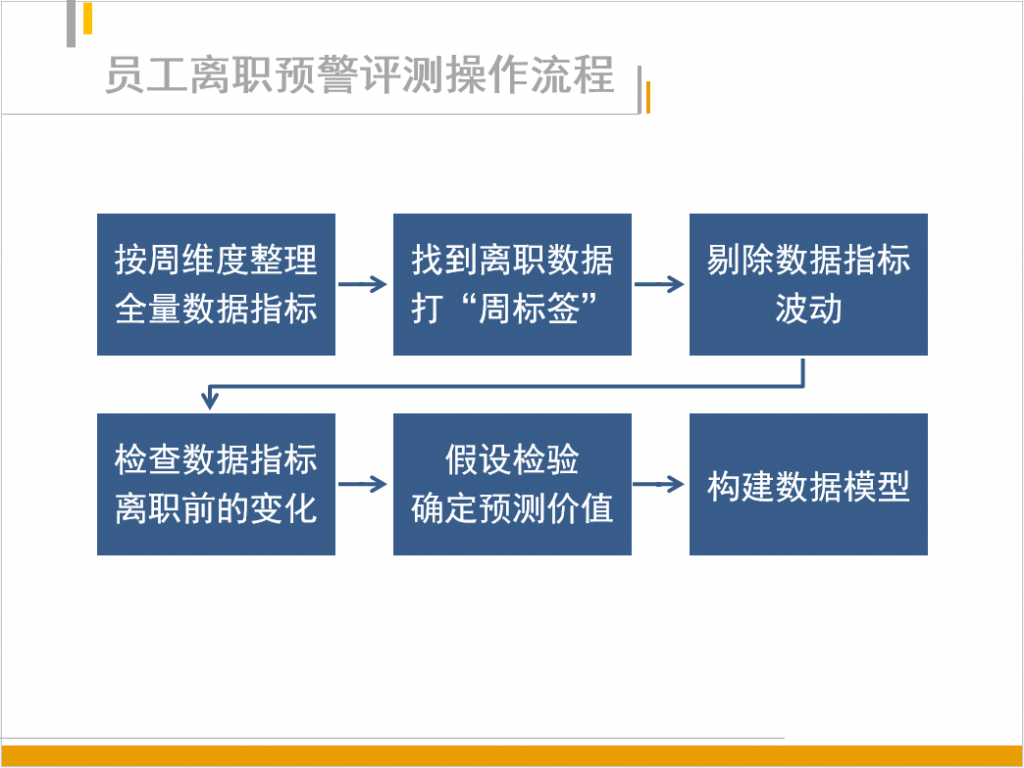 经过前面五个环节,在充分了解员工离职前的数据变化之后就可以构建离职预警评测的数据模型了。