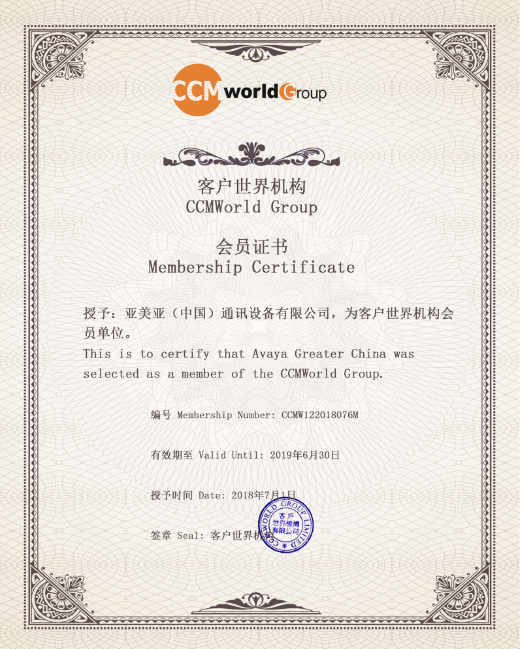 AVAYA成为客户世界2018/2019企业会员