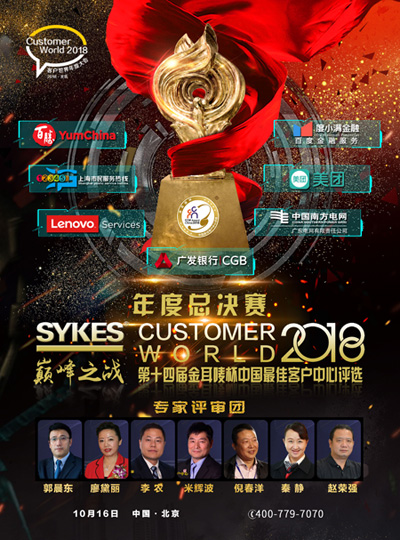 2018第十四届“金耳唛杯”中国最佳客户中心评选-年度总决赛暨标杆企业案例分享会定于10月16日下午在京举行。活动由赛科斯中国公司冠名为“SYKES巅峰之战”。经过评委会认真遴选,如下7家单位的代表将在现场参与年度总冠军争夺:广发银行信用卡客服中心(卫冕冠军)、百胜餐饮数字化服务中心、上海12345市民服务热线、度小满金融客服中心、美团服务、联想服务、广东电网信息中心客服部。最惊险刺激的现场PK,最分析到位的标杆案例,年度唯一的王者加冕。值得期待!