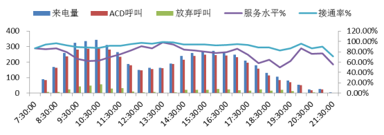 其二,班务随着来话高峰的变化而变化,有利于提升来话量与人员编排的吻合度,确保各时段的接通率指标提升, 利用有限的人员,最大限度的提升当日的接通率指标,提升运营效益。