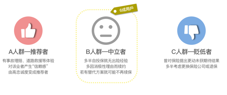 探究原因后发现因为商品特性,像索尼损保这样的互联网产险公司与保户互动频率一般较低,保户自投保到一年后续约期间与索尼损保没有任何接触,在这样的情况下,只能凭借对品牌的印象或是价格去决定是否续约,自然很难产生忠诚,因此当务之急是提升保户对索尼损保品牌的感知价值。