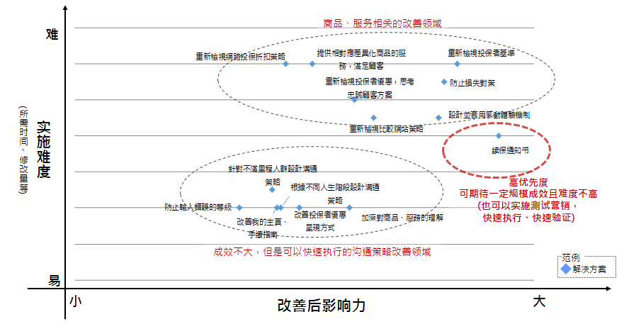 厘清问题后,beBit制定出多种在线及线下解决方案,在评估影响力及可行性后,建议优先执行“续保通知书”的优化。
