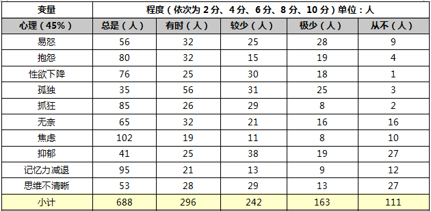 表1 压力情况调查结果统计表
