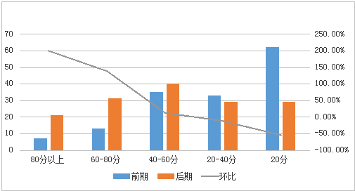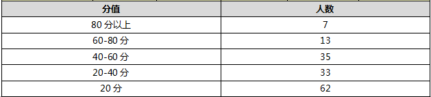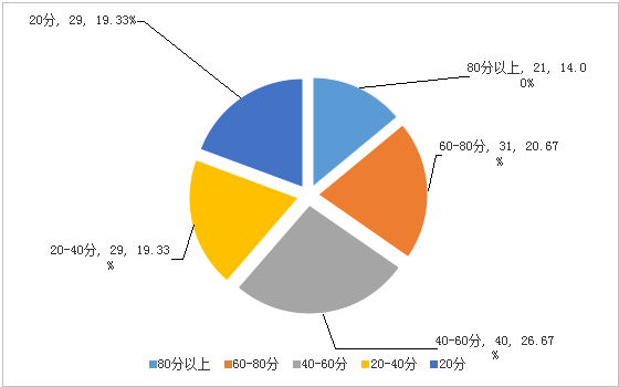 笔者小组试将以上三种对策在前期调研的150名90后新员工班组中进行推广,以1个月为最短时间轴,发现客服专员不仅各项指标都有所提升,且其在接听话务时因客户导致的烦躁情绪与情绪失控时间逐渐减少,一个月后针对前期150名客服专员再次进行相同调查,调查结果如下表此可看得分在20分以下的客服专员有大幅度减少,效果明显(如图6)。